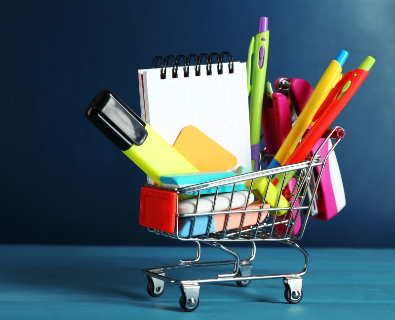 Plumas, cuadernos, pegamento, envolturas y mucho más.